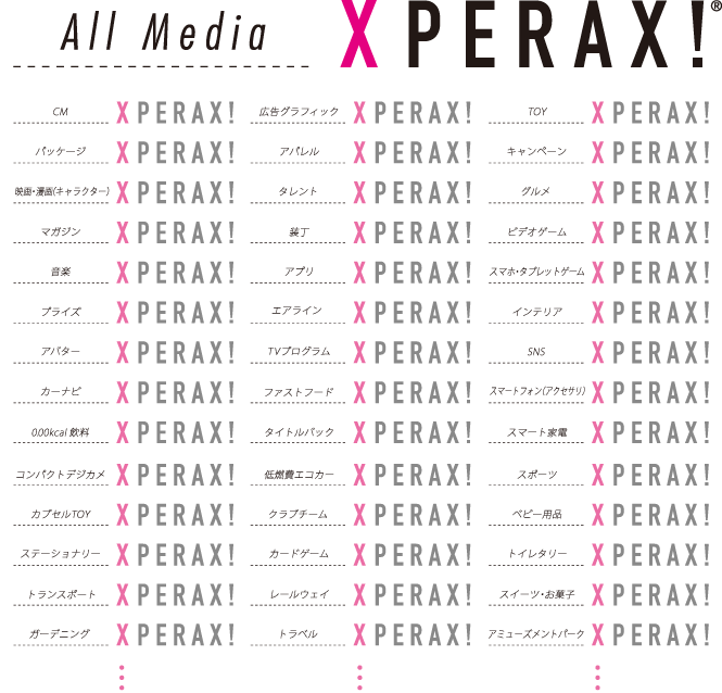 このキャラクターはPERAX!®オリジナルブランドの作品展開はもちろん、PERAX!®キャラクターフォーマットを起用して